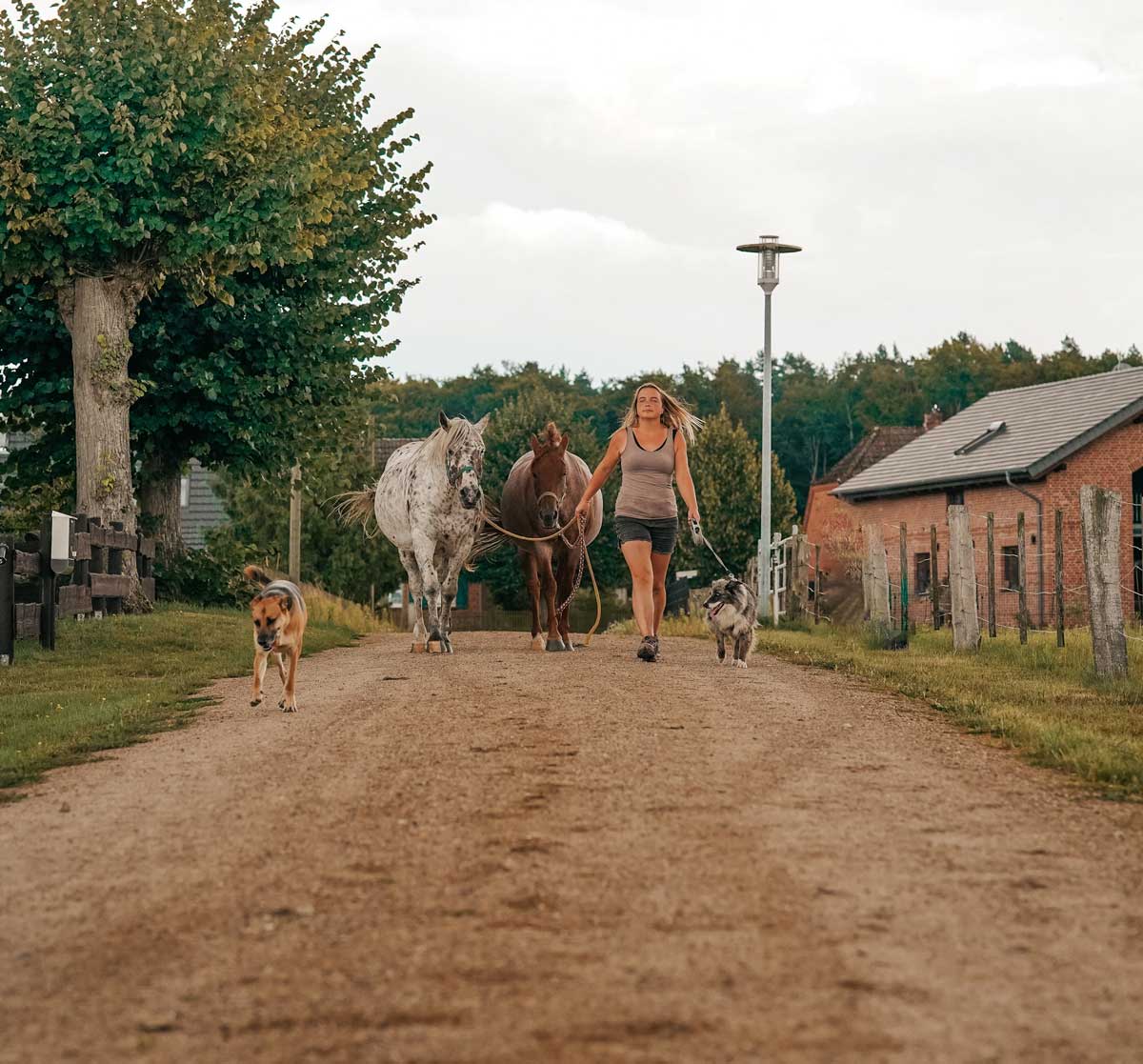 Mit acht Jahren zog ich, zusammen mit meiner Familie, aufs Dorf und verbrachte fortan jede freie Minute draußen bei Tieren. Mit zehn bekam ich mein erstes Pferd – seitdem versorge ich meine Tiere selbst. Pferde begleiten mich, solange ich denken kann, und auch Hunde gehören zu meinem Leben, wenn auch ihre wesentlich kürzere Lebensspanne die Abschiede häufiger macht. Die Kaninchen kamen erst vor einigen Jahren wieder dazu. Aber auch schon als Kind, hatte ich welche.